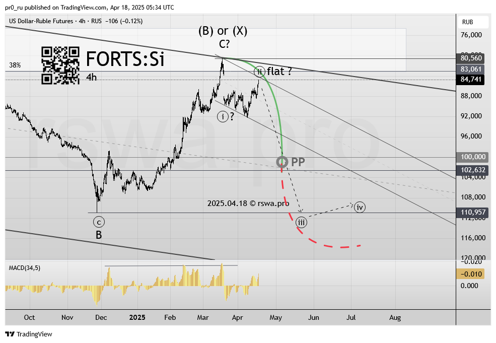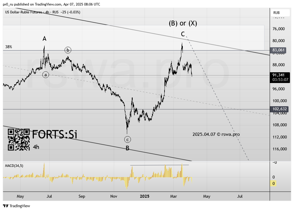 2025.04.07 11:08: 20250407si4h.png курс долгосрочно идёт на 130-150, рост нефти не поможет рублю, это будет всего-лишь компенсация. Новости и события не движут ценами.